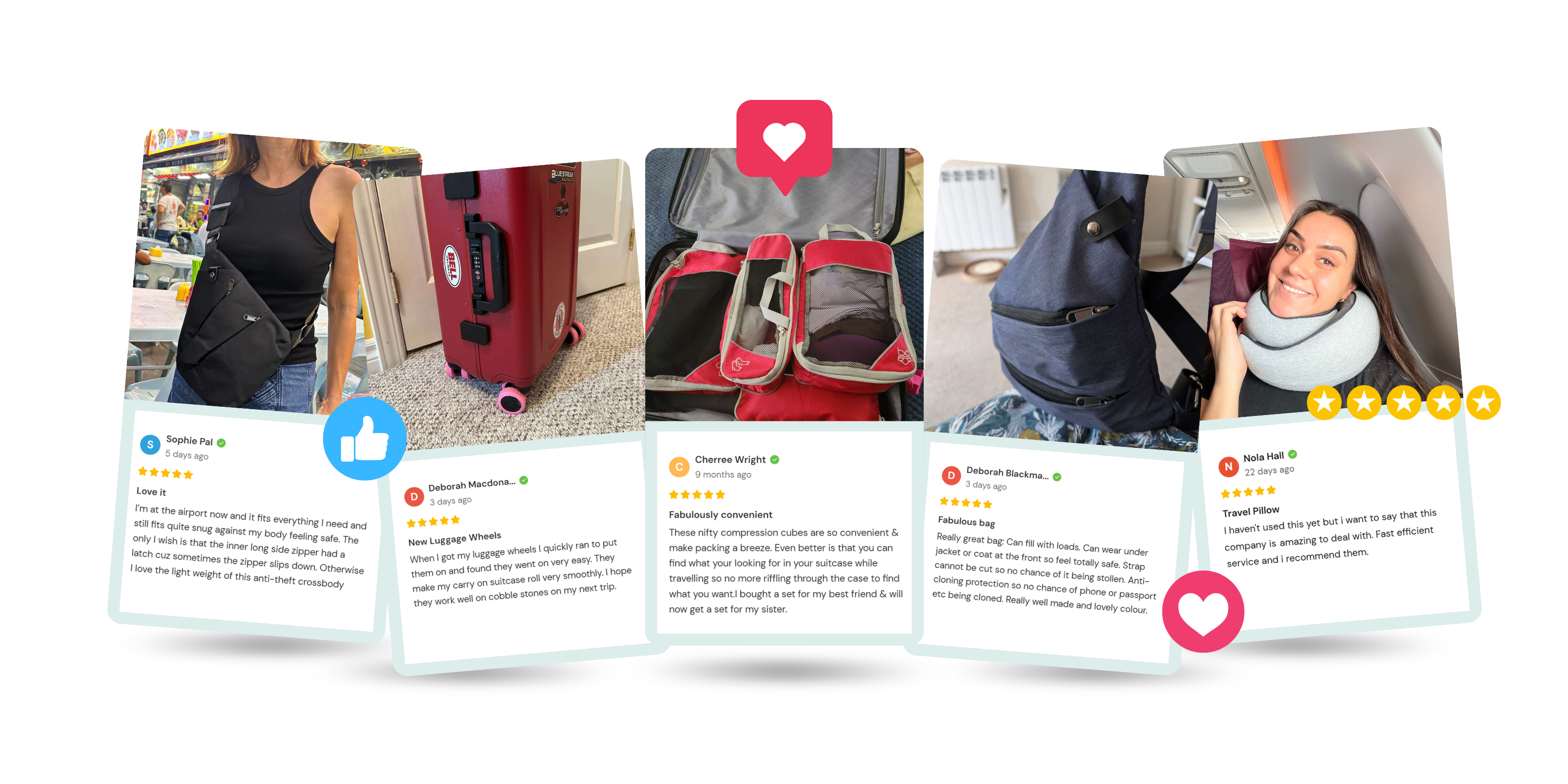 Whether it’s keeping your suitcase organised or your valuables safe, our products help you travel with peace of mind. They’re made to solve your travel problems, because we’ve been in your shoes (probably racing to the airport last minute, or trying to fit one more outfit in our suitcase).
