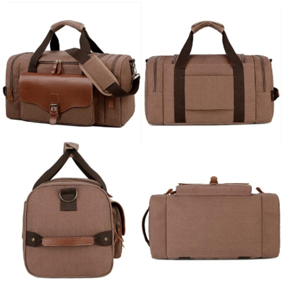 Multi-Compartment Leather Accent Duffle Bag