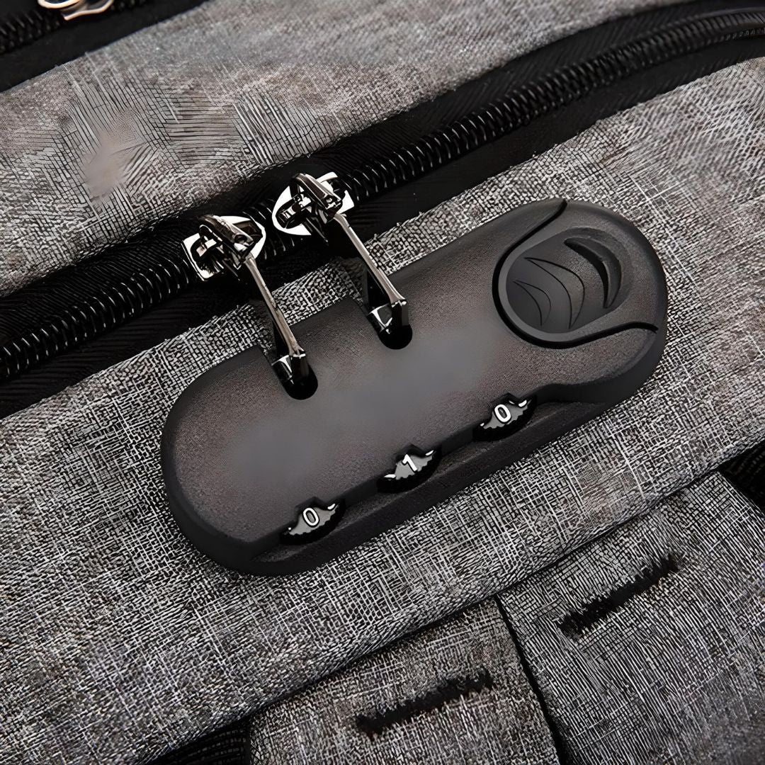 The Sleek Anti-Theft Backpack's cutting-edge 3-digit passcode lock ensures your belongings stay safe and secure. The lock secures the main compartment's double zipper, providing an extra layer of protection against pickpocketing and theft. Navigate crowded streets, public transport, and tourist hotspots with confidence, knowing your valuables are protected by the best anti-theft technology.